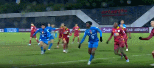 第42分钟,武汉女足错失绝佳良机,外援奥乌苏禁区内空门机会离谱打偏。